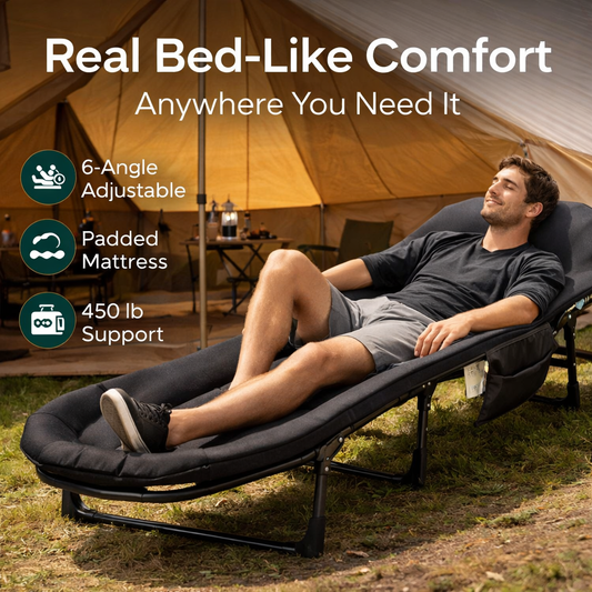 Camping Cot for Adults – 6 Angle Adjustable Folding Bed