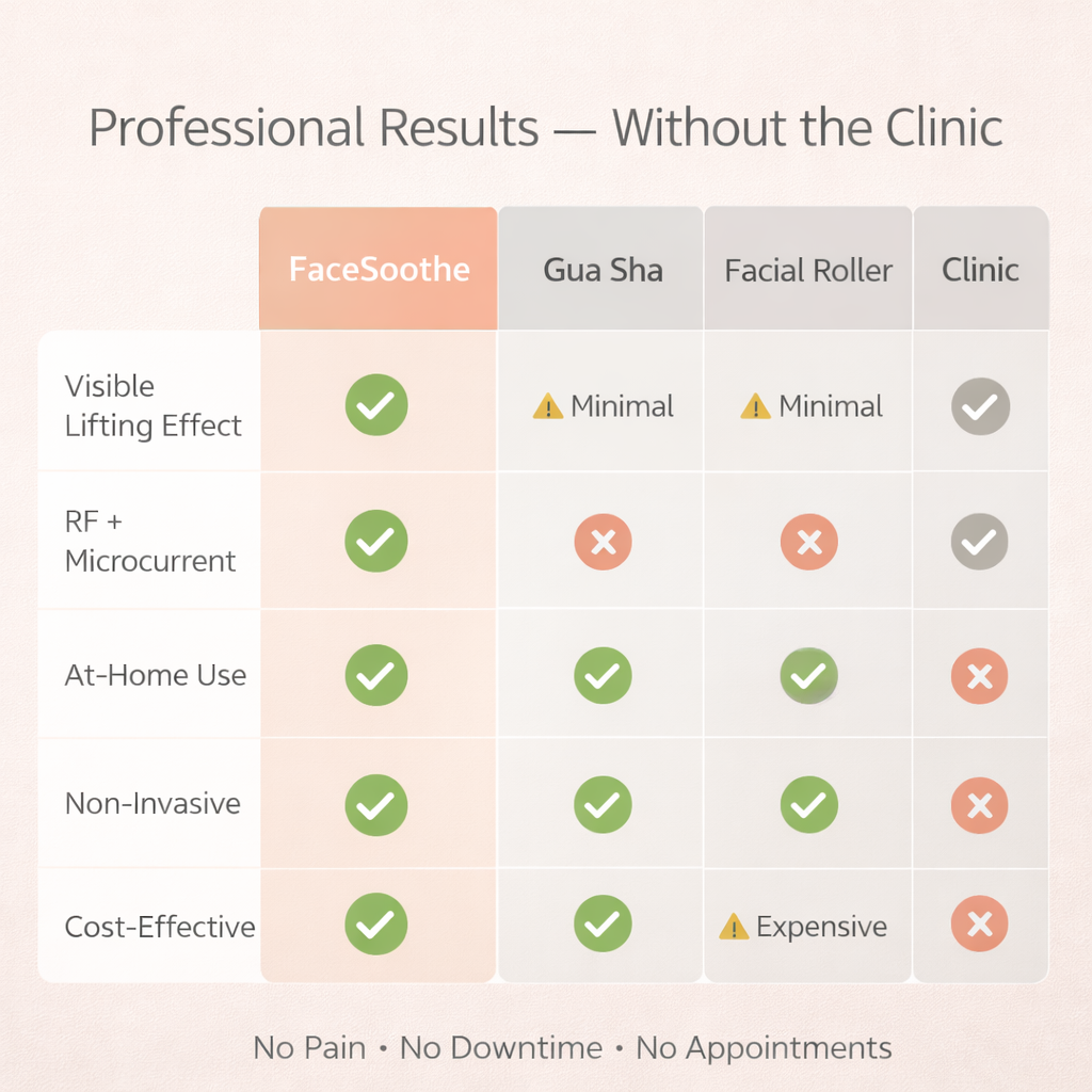 “FaceSoothe is a non-invasive alternative for lifting and firming at home. While it doesn’t replace medical procedures, many users see visible improvements without needles or downtime.”