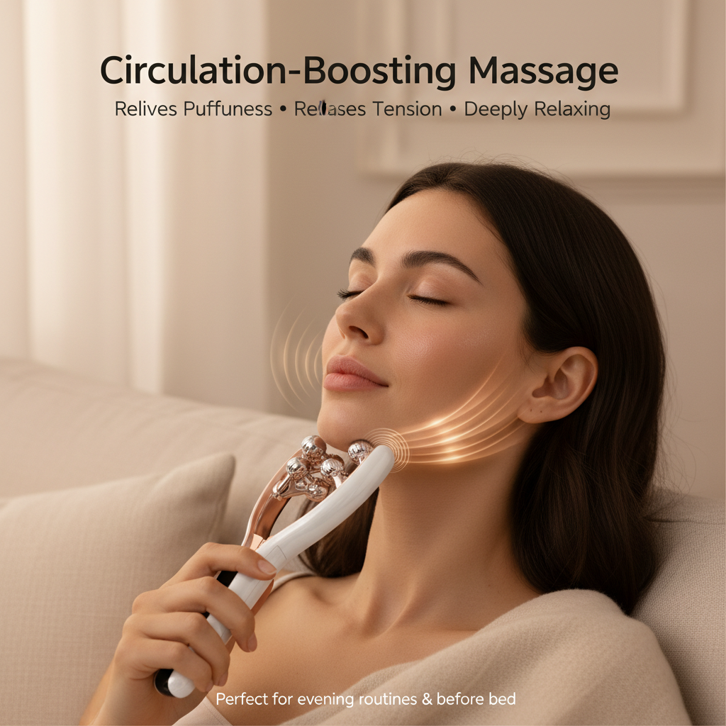 High-frequency vibration helps improve blood circulation and lymphatic drainage, reducing facial puffiness caused by fluid buildup and fatigue.